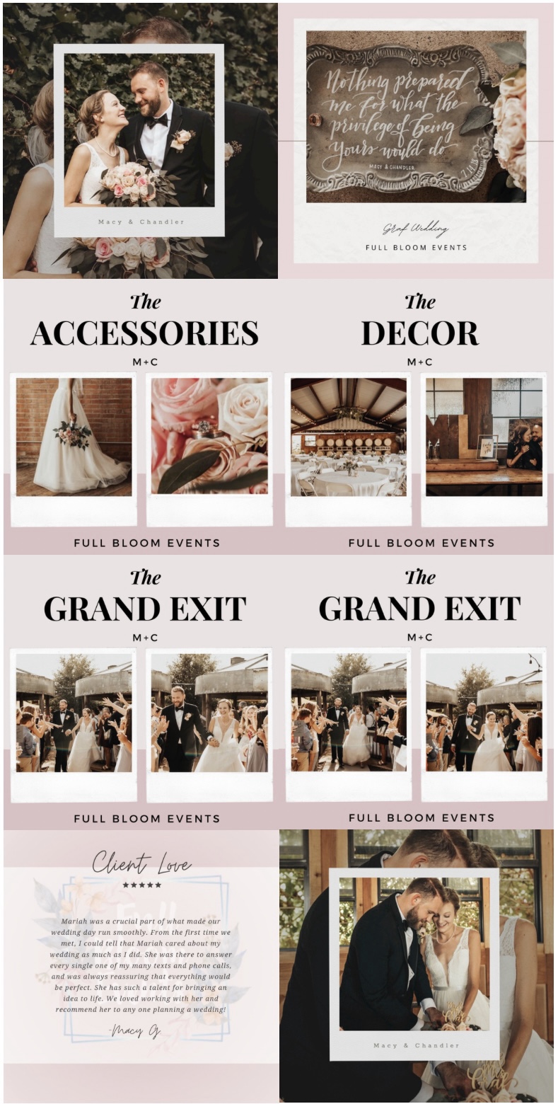 “Mariah was a crucial part of what made our wedding day run smoothly. From the first time we met, I could tell that Mariah cared about my wedding as much as I did. She was there to answer every single one of my many texts and phone calls, and was always reassuring that everything would be perfect. She has such a talent for bringing an idea to life. We loved working with her and recommend her to any one planning a wedding!”